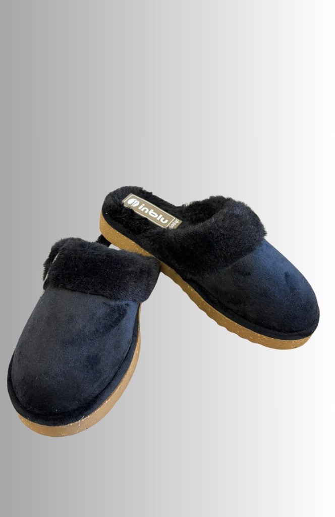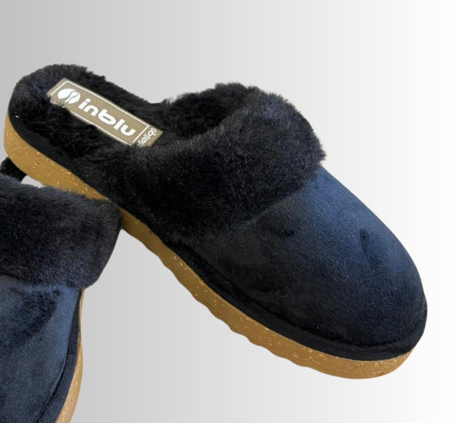 Ciabatte In Blu invernali scamosciate pelo gomma anti scivolo art EY000032