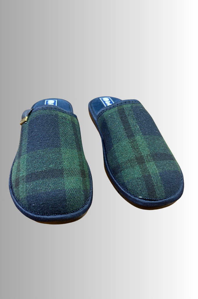 Eleganza senza tempo per queste pantofole da camera da uomo in stile inglese. Realizzate con tessuto scozzese a quadri verde e blu, richiamano lintramontabile fascino british, perfetto per chi ama distinguersi anche nei momenti di relax.