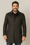 Cappotto tre quarti con allacciatura centrale con quattro bottoni.