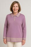 Dettagli: Maglia rasata, bottoni sul collo, collo e bordo con lavorazione fantasia arricchita da lurex