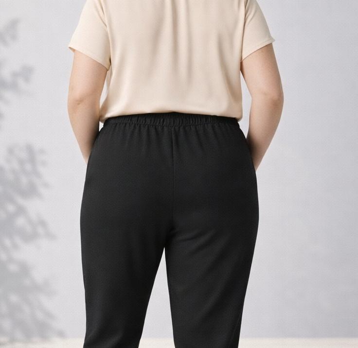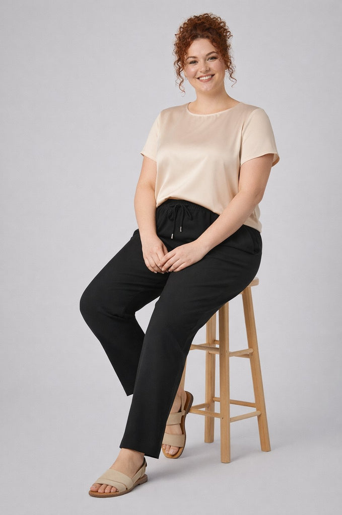 La vita elasticizzata con coulisse garantisce una vestibilità regolabile e pratica, mentre le tasche laterali aggiungono funzionalità senza rinunciare allo stile.