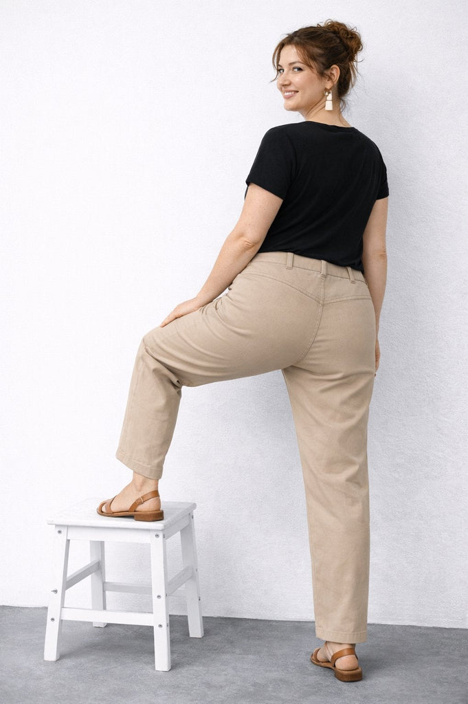 Pantalone da donna in puro cotone, leggero e traspirante, perfetto per la stagione calda. Il modello Luisa di Larca Viola ha una linea sportiva e confortevole, pensata per offrire libertà di movimento e uno stile casual raffinato.