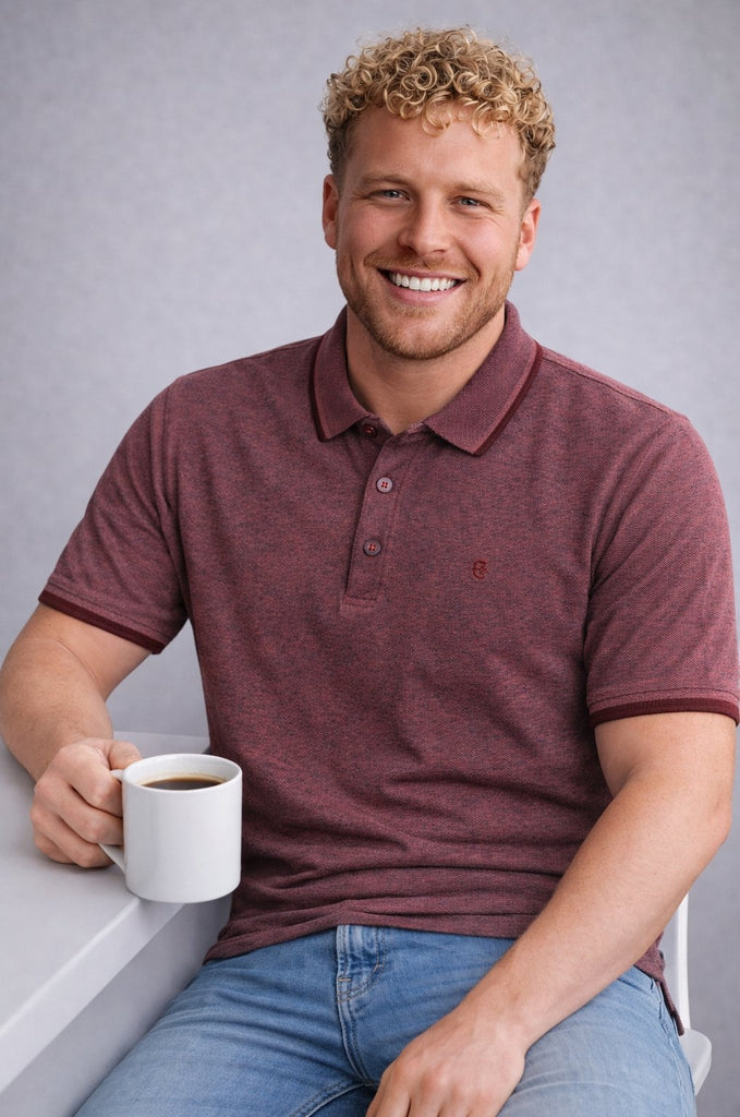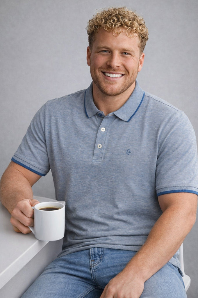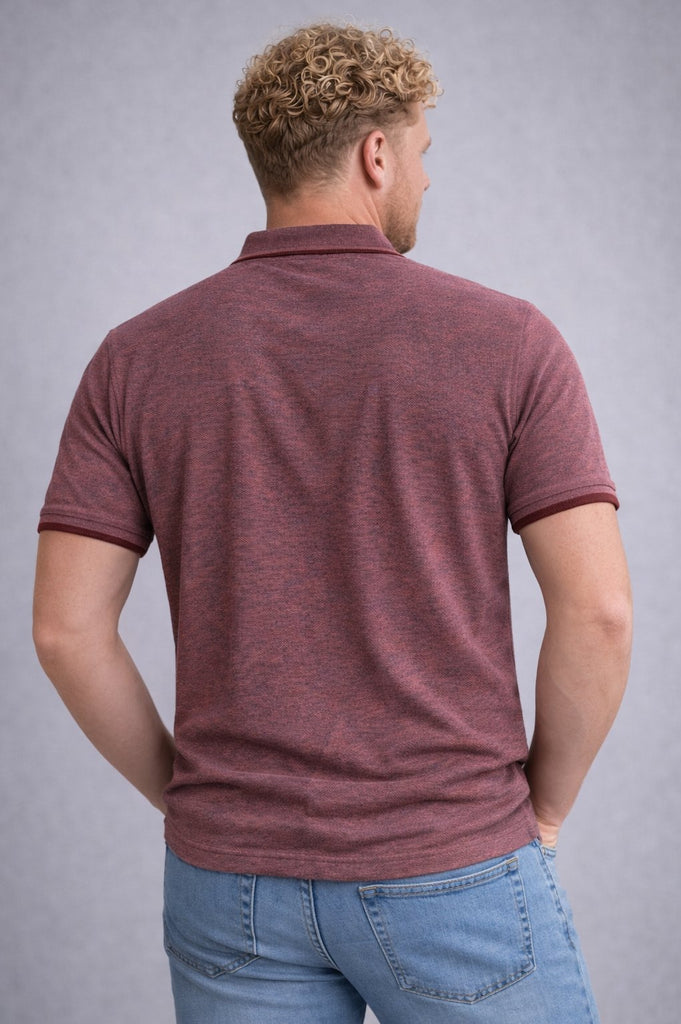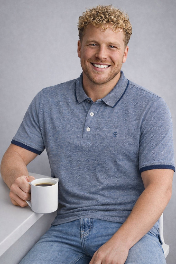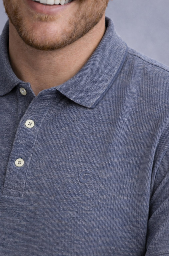 La polo Coveri in tessuto puro cotone effetto sale e pepe unisce stile contemporaneo e qualità dei materiali. Il tessuto con grana più grossa dona carattere al capo, mantenendo traspirabilità e comfort per tutto il giorno.